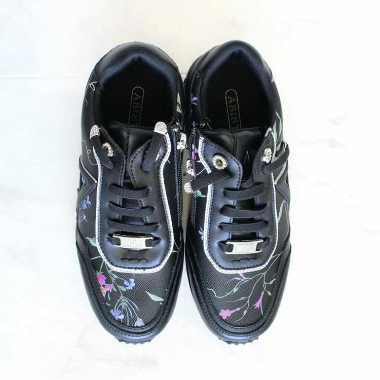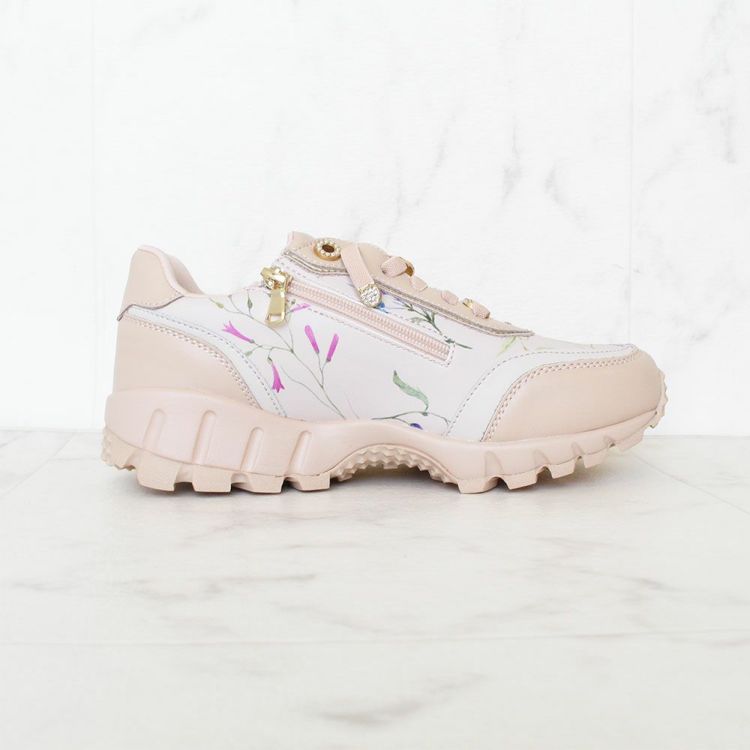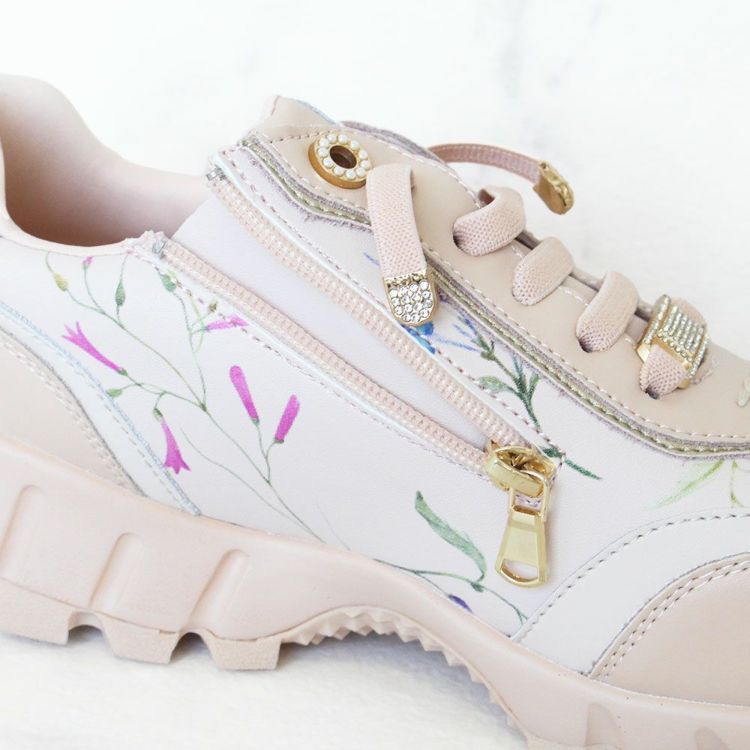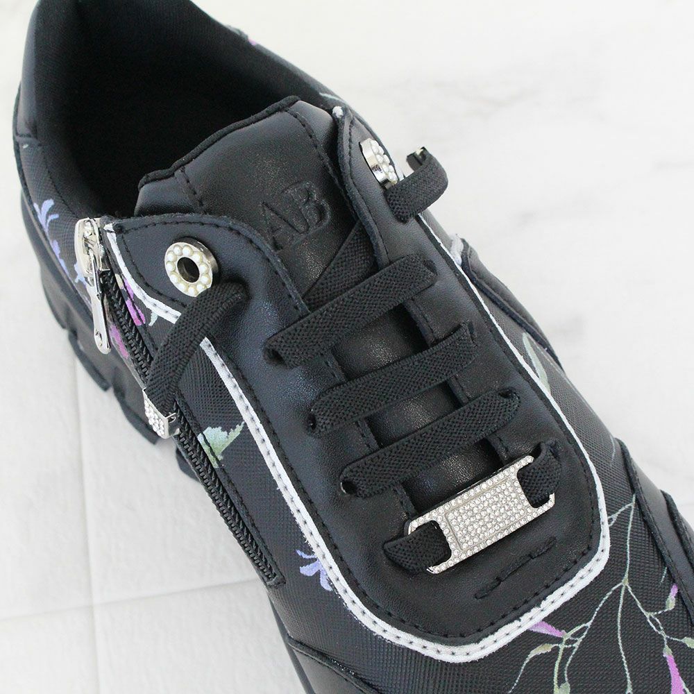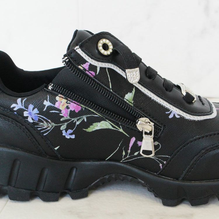 《結ばない靴紐》フラワー柄サイドファスナースニーカー