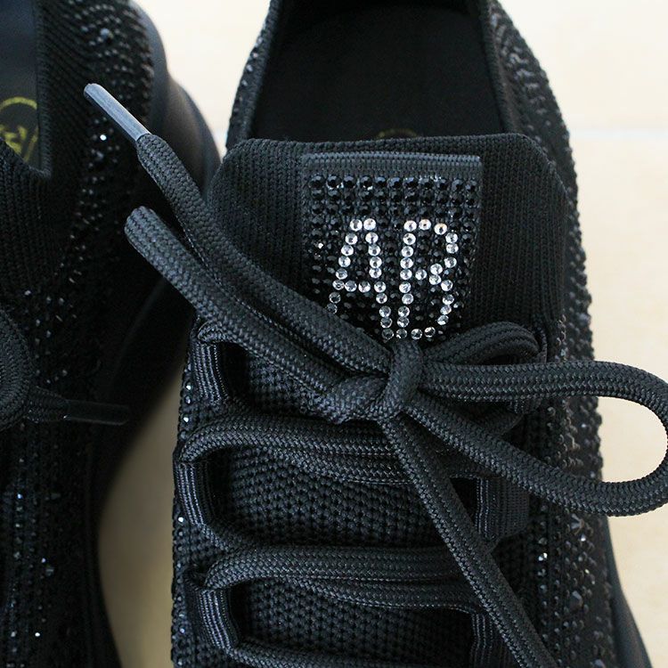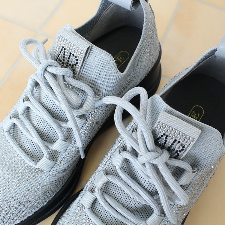 《結ばない靴紐》レザーインソールスライドコードキラキラスニーカー