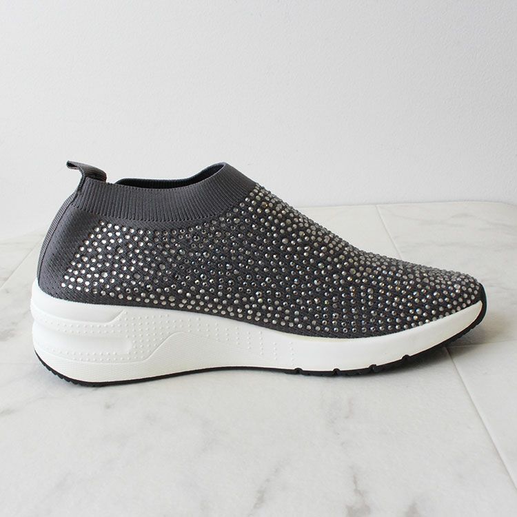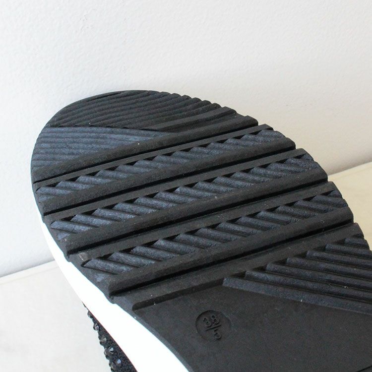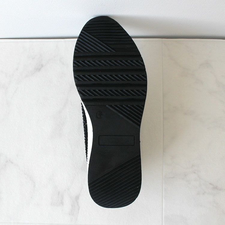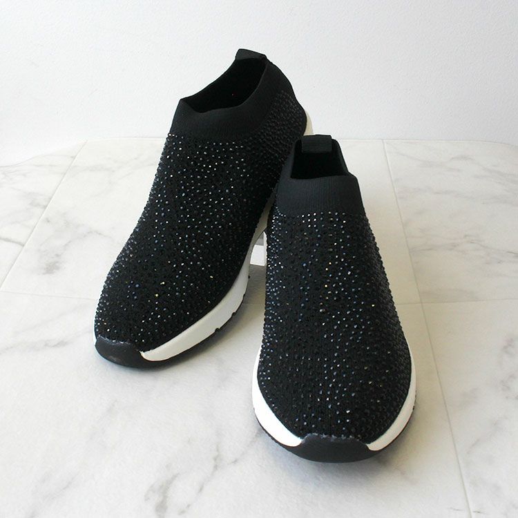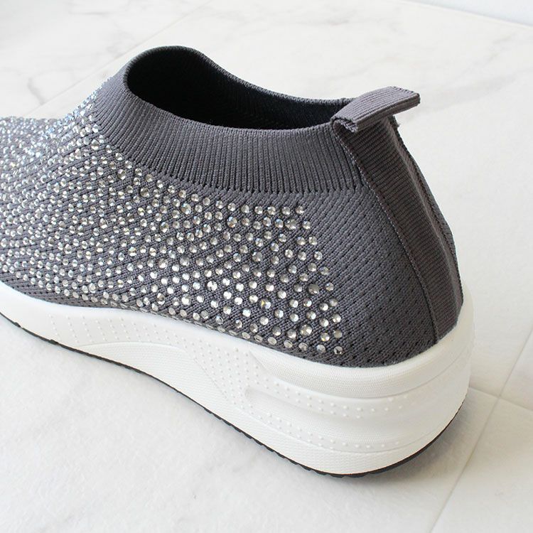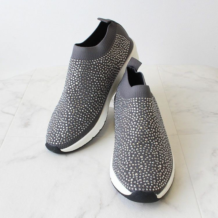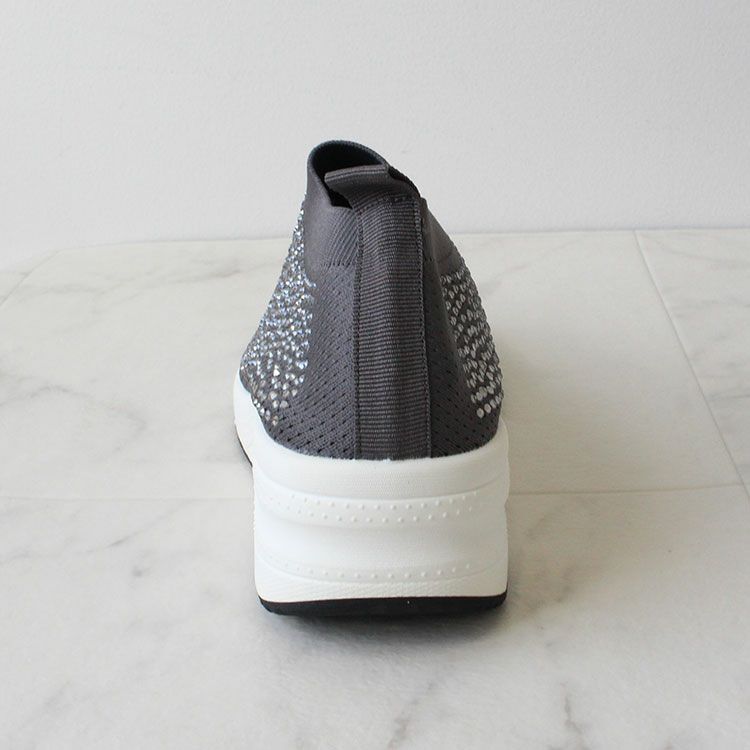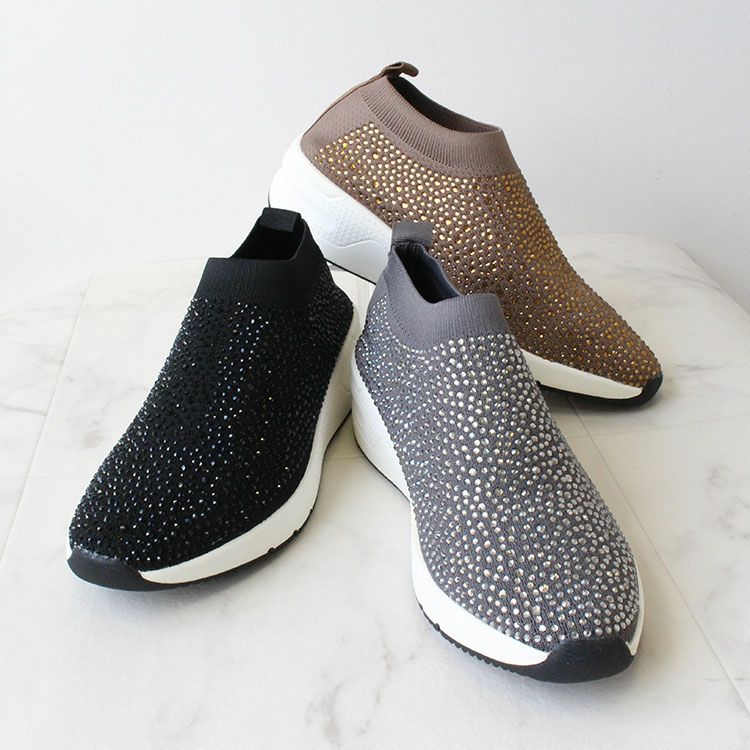 甲全体にストーンがあしらわれたデザインとシンプルなシェイプが足元を華やかかつすっきりと見せてくれるニットシューズ。柔らかく足にフィットするため快適な履き心地が特徴です。アッパー全体がニット地なので通気性が良く、夏の暑さや冬の暖房と一年中汗をかきがちな足を心地よく守ります。