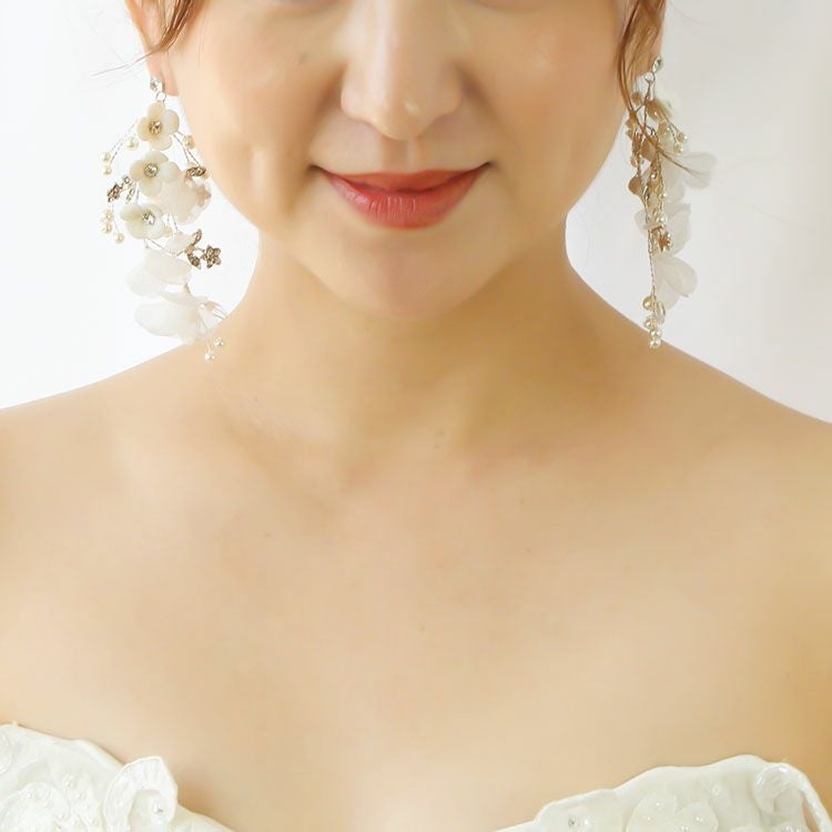 【ボックス付き】シフォンフラワーロングチェーンすずらんピアス