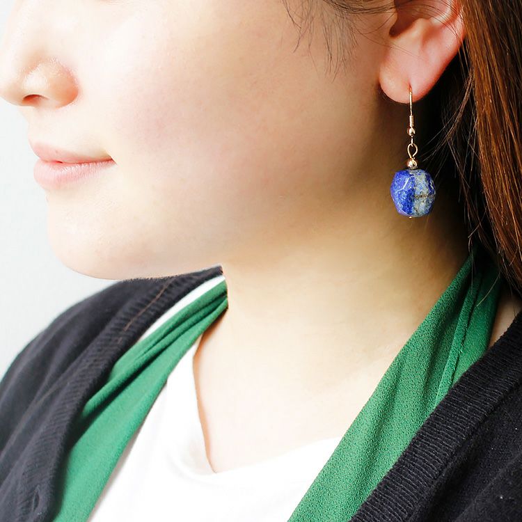 天然石のラピスラズリを使用した多面カットが魅力的なピアス。