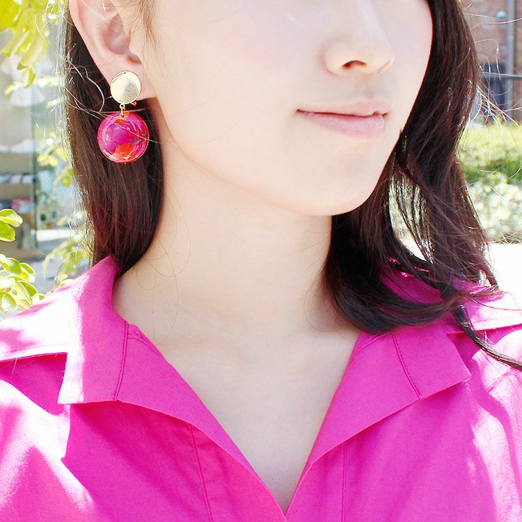 アジサイ押し花ラウンドイヤリング/3020166