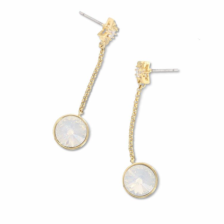 ダイヤモンドのように輝くことで知られるキュービックジルコニアと乳白色のチェコクリスタルが顔映りを華やかにしてくれるピアス。長めのチェーンは揺れ感がかわいく、お揃いのリングとのコーディネートもオススメです。
