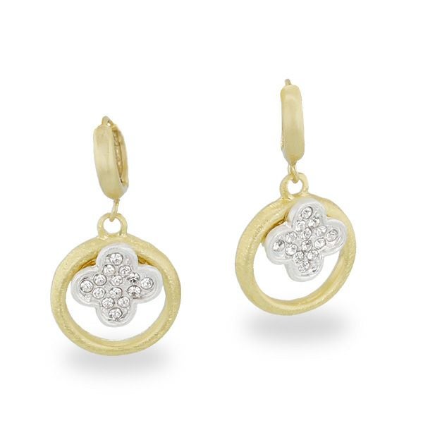 メタル部分にはスクラッチ(細かい擦り傷)をあえて全体に付け、表面の光沢感を抑えてこなれた印象に仕上げたピアス。シルバー、ゴールドの2色のフラワーモチーフが揺れ、クリスタルガラスがさりげなく輝きます。小ぶりで軽く、デイリーのアクセサリーにオススメです。