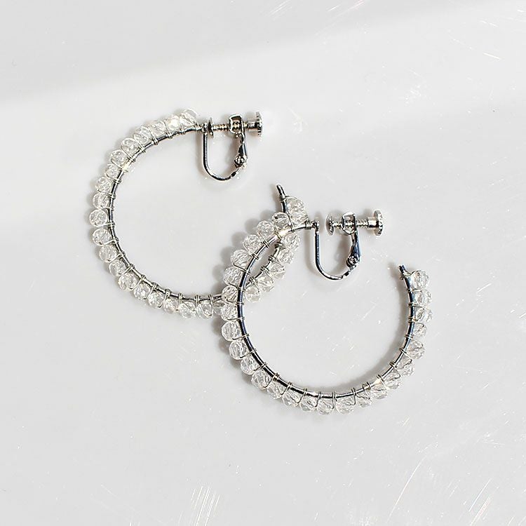 クォーツの中でも無色透明で純度の高い天然クォーツを使用したロック・クリスタル(本水晶)のフープイヤリング。