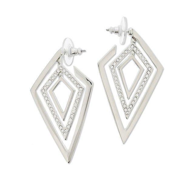 メタルとクリスタルガラスで作られた個性派辛口ピアス。正面から見たときはシンプルなメタルの線形を見せることができ、横から見たときは、クリスタルガラスが輝いて華やかさを演出することが出来ます。