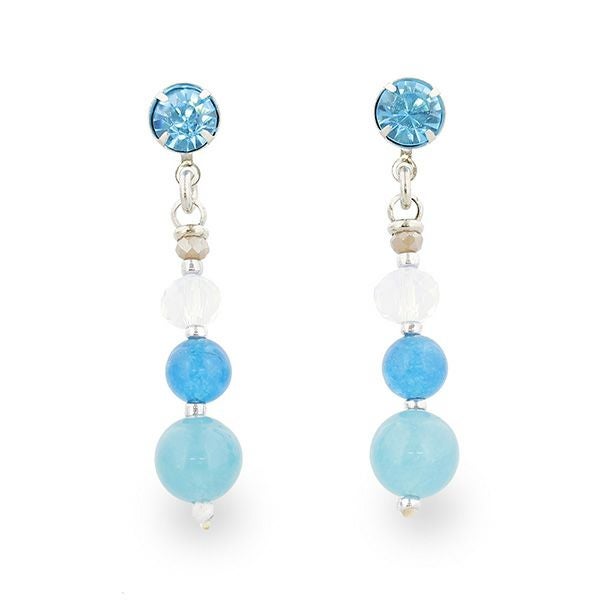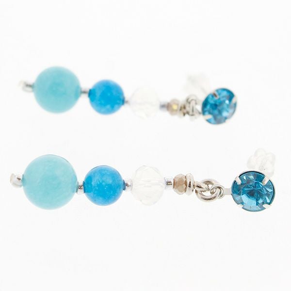 ブルー系のビーズでまとめた爽やかなピアス。 クリスタルガラスの上品なきらめきが耳元を華やかに飾ります。