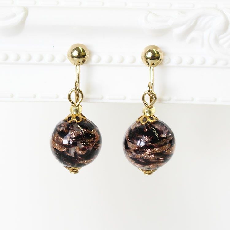 ベネチアンガラスアヴェンチュリーナビーズイヤリング