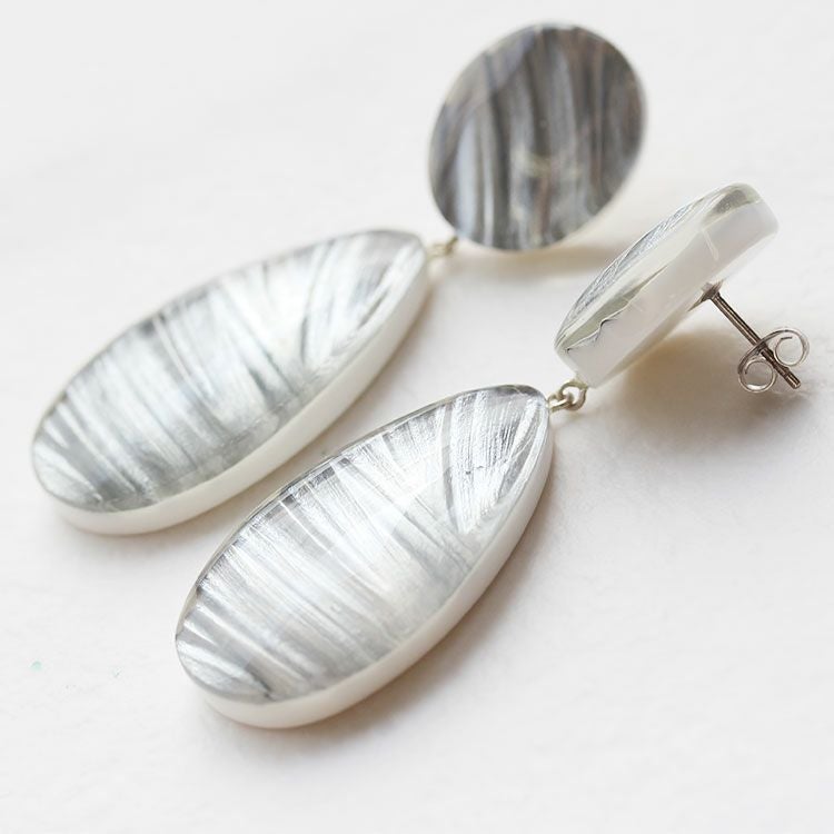 筆で描かれたような幻想的なデザインのシリーズ。思わず引き込まれるような色づかいのパーツは角度によって見え方が異なります。こだわりのハンドメイドアクリルジュエリーならではの魅力をお楽しみください。