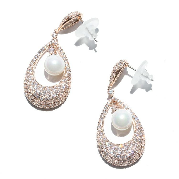 キュービックジルコニア×パールドロップ型ピアス/3180014