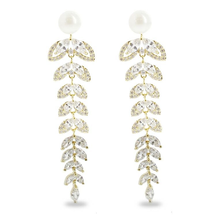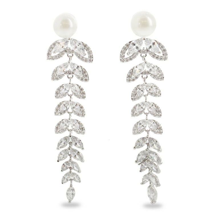 キュービックジルコニア×パールロングチェーンピアス/3180013