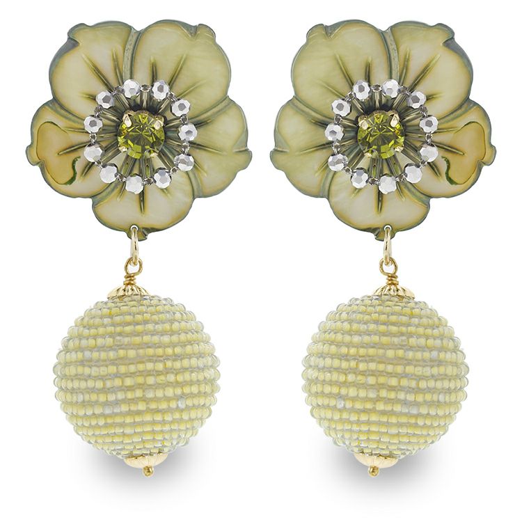 まるで本物のお花のような華やかなデザインのイヤリング。 白蝶貝で作られた花びらは貝独特の艶感を演出します。 シンプルなコーディネートに、お出かけの時に、様々なシーンで着用頂けます。