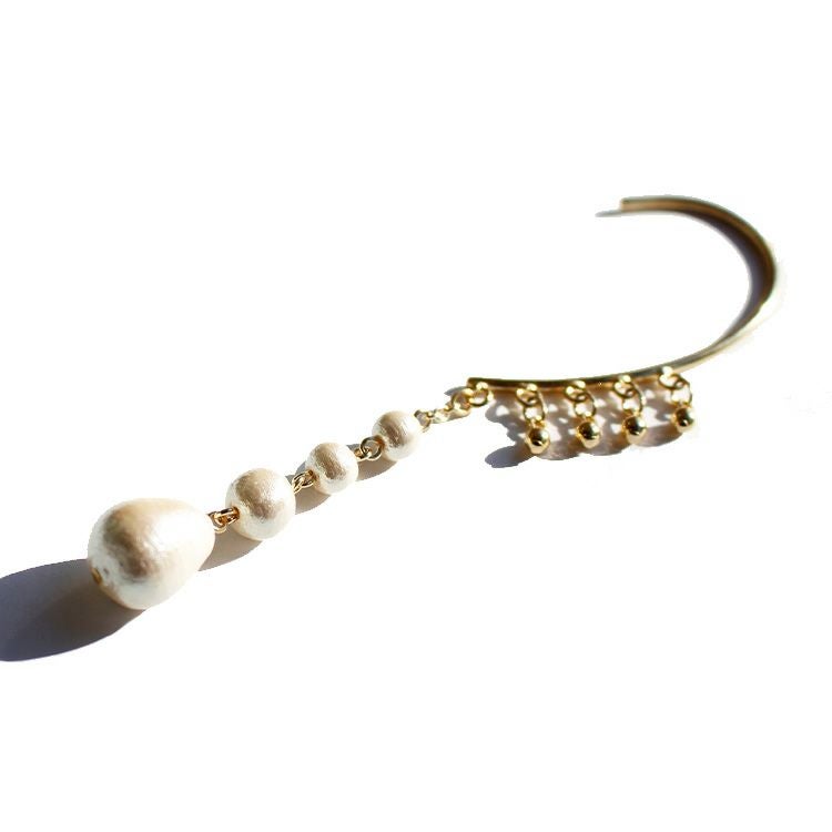 耳たぶの後ろからさりげなく覗くコットンパールが個性をプラスしてくれるイヤーフック。