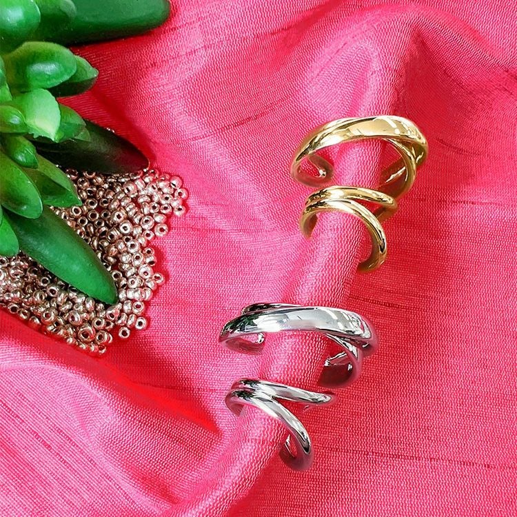 メタルオンリーでリュクスな雰囲気を添えるイヤーカフ2点セットです。