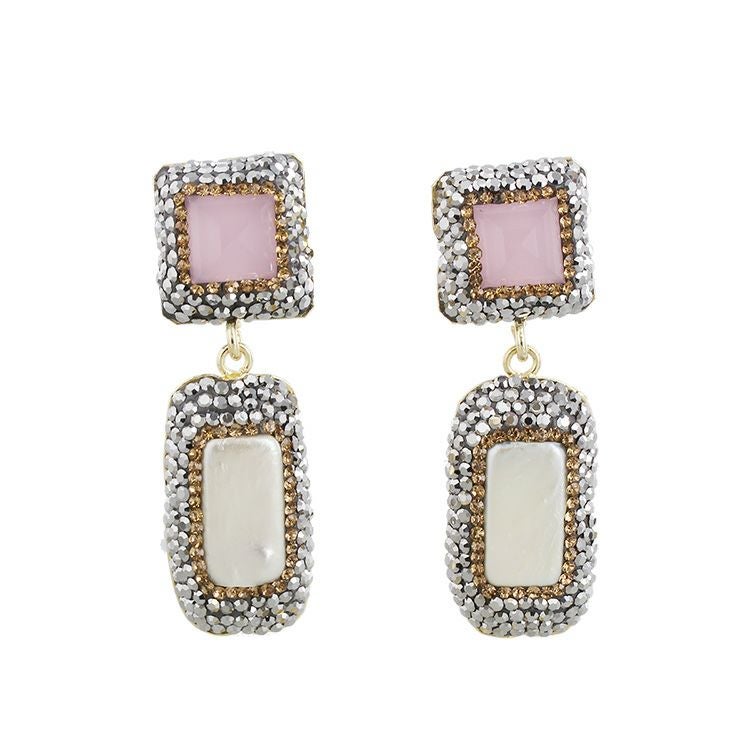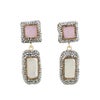 柔らかい印象のピンクキャッツアイをクールなカラーのクリスタルガラスで囲んだ、スパイスの効いた絶妙な甘さとエレガンスが魅力的なピアス。