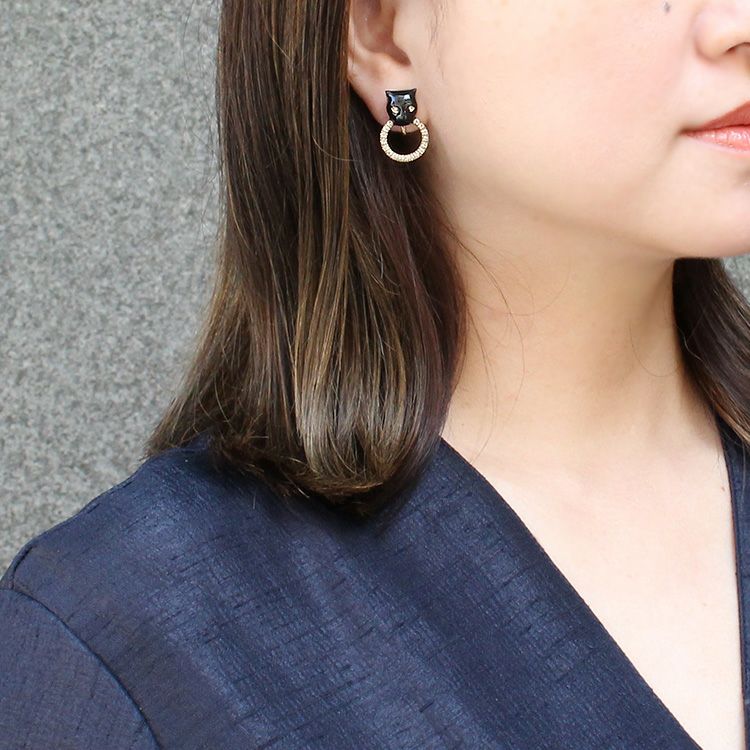 表情まで凛とした印象にしてくれそうな、艶やかなエナメルのパンサーモチーフが目を惹くラグジュアリーなイヤリング。