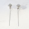 スクエアモチーフにはチェコクリスタルがパヴェ上に敷き詰められており耳元に煌めきをあたえてくれます。モチーフの奥でぶら下るロングチェーンのゆったりした揺れ感が女性らしさを引き立てます。