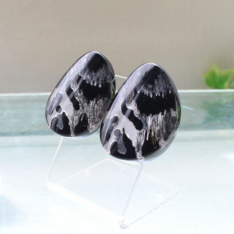 上質な樹脂、ポリエステルレジンの特性を活かし、ガラスのような質感を再現しつつも、軽くてつけやすいことで人気を博しています。肌に触れる部分に金属を使用していないため、アレルギーの方でも安心してお使いいただけます。