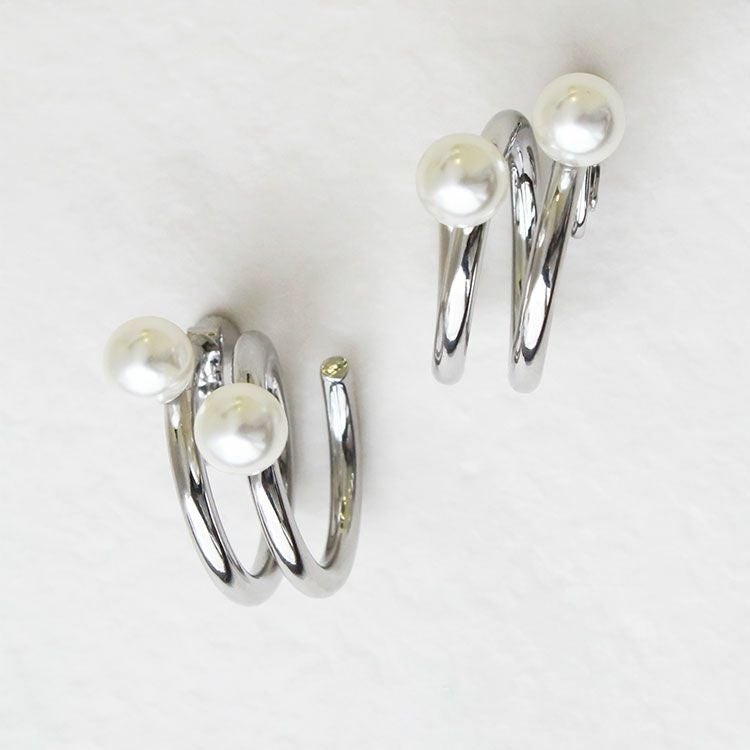 パール×メタルフープイヤリング
