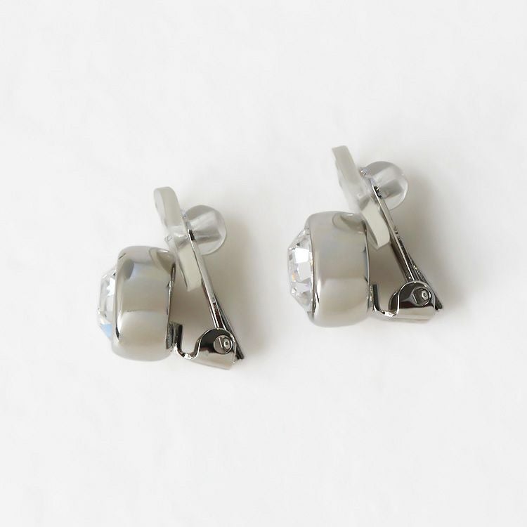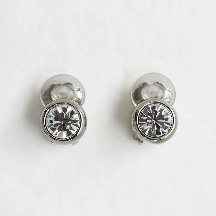 大粒のチェコクリスタルガラスを3粒配した、スモールサイズのビジューイヤリング。パールネックレスやアクリルのブローチなど幅広い素材やデザインのアクセサリー・時計と合わせやすく、複数のアイテムを身につけていてもトゥーマッチにならないのは小さめサイズならではの魅力。ストーンの輝きがしっかりと顔周りに華やぎをプラスするので、さみしい印象にはなりません。