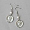 アメリカ10セントマーキュリーダイムコイン×パールロングイヤリング
