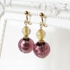 銀箔をガラスで包み込んだ、ベネチアンガラスの伝統的な技法で作られたビーズを使用したイヤリング。クリアなガラスと金箔、パープルのガラスと銀箔のコントラストが思わず見入ってしまう美しさ。