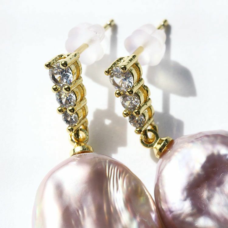 平ドロップ型淡水パールピアス/3241014