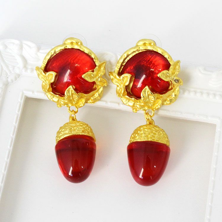 ドングリのようなモチーフが印象的なアンティーク調デザインロングピアス。遊びゴコロあふれる大ぶりのデザインはコスチュームジュエリーならでは。パーティーシーンや会食、外出時はもちろん、普段使いに、コーディネートのアクセントにご利用ください。