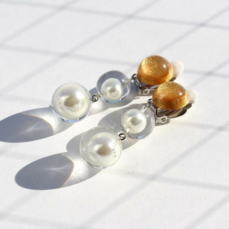 パールを透明の樹脂で覆った、透明感のある瑞々しいパーツが新鮮なFLOATING PEARLSシリーズ。どのようなお洋服にも合わせやすく、幅広い世代に愛されるデザインは、シスカの中でも特に人気のシリーズです。