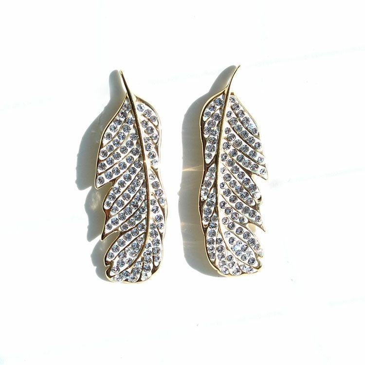 チェコクリスタルフェザーモチーフデザインイヤリング