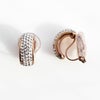 アーチ状に緩やかなカーブを描くデザインイヤリング。表面にはパヴェ状にチェコクリスタルが敷き詰められ輝きを放っています。 シンプルなデザインなのでフォーマルや普段使いにと重宝しそう。 ステンレス製でアレルギー反応を起こしにくく、丈夫で気兼ねなく使えるのが嬉しいポイント。