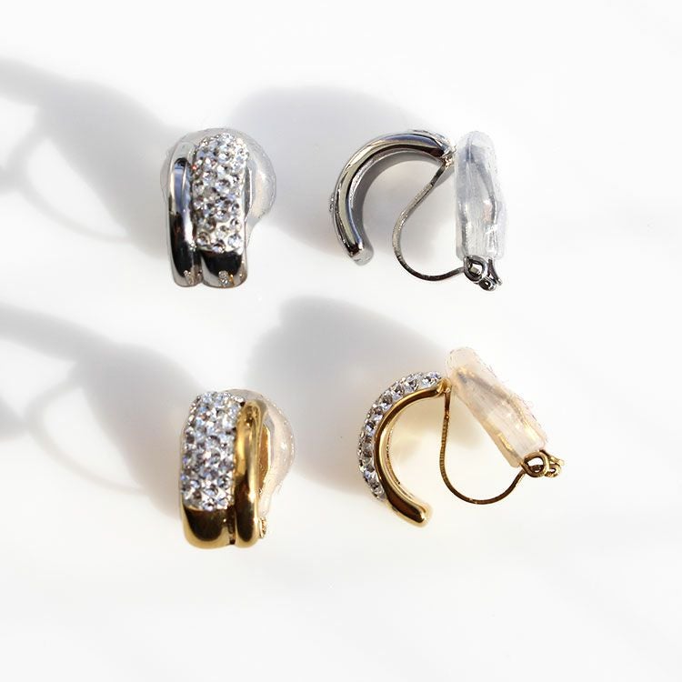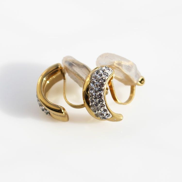 アーチ状に緩やかなカーブを描くデザインイヤリング。表面にはパヴェ状にチェコクリスタルが敷き詰められ輝きを放っています。