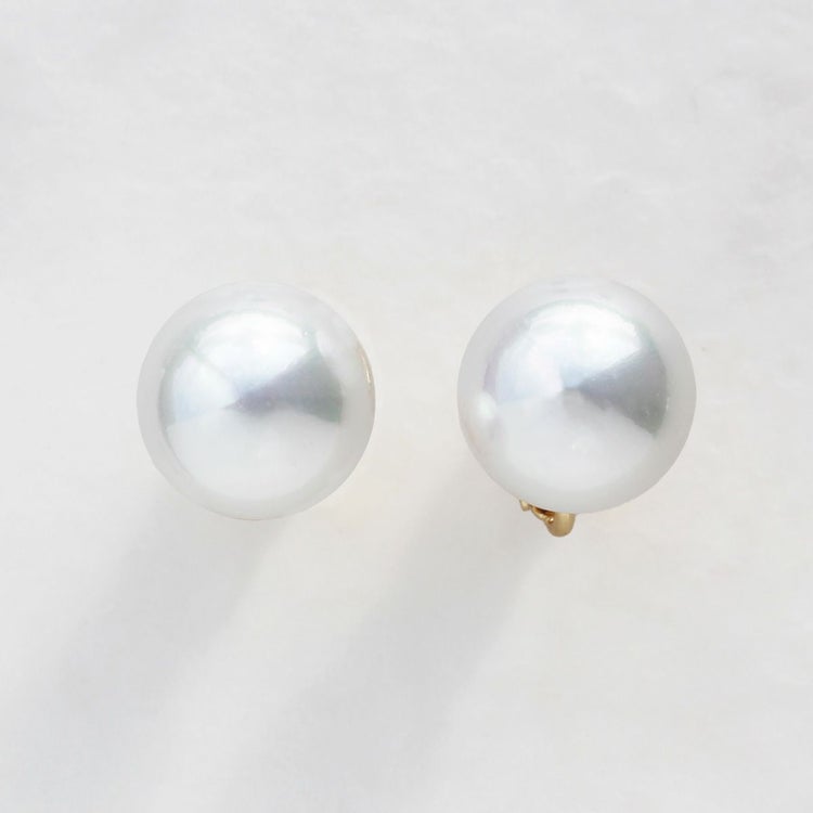 世界一の人工パールといわれるスペイン、マヨルカ島で生産されるマジョルカパールのイヤリング。華やかな大粒の14mm玉。