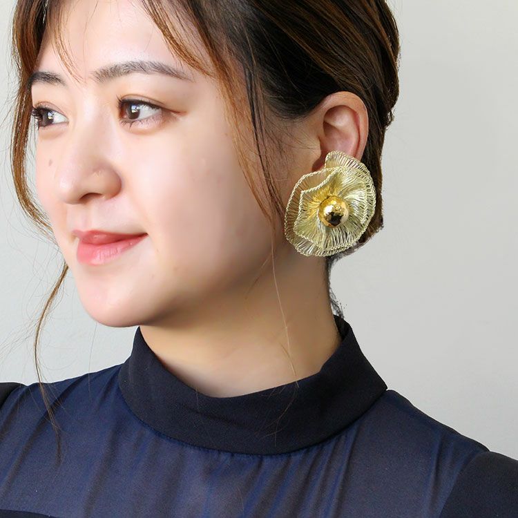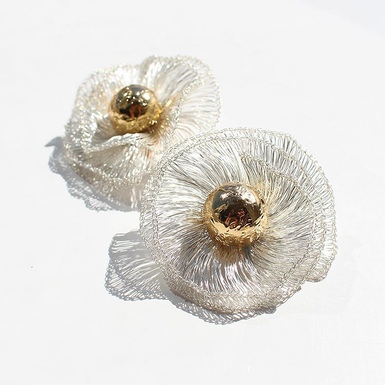 コッパーワイヤーを繊細な手仕事でお花のように編み上げたフラワーモチーフイヤリング。しっかりとした艶感がありながらも、しなやかな表面感が魅力的なデザインはまるで芸術作品のような美しさです。 パーティーや会食、女子会、カジュアルシーンなどに幅広くご利用いただけます。