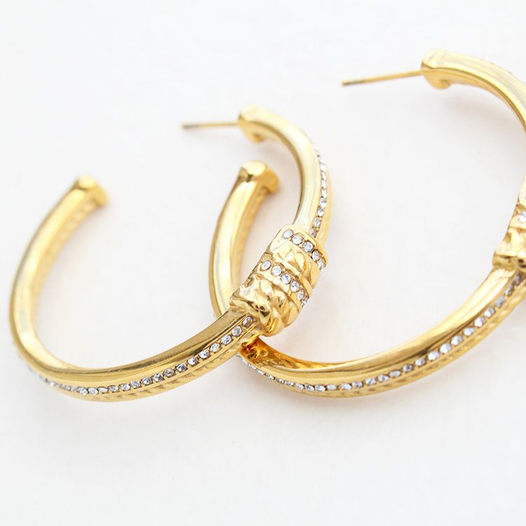 シンプルでいて、クリスタルガラスと中央のノットデザインがアクセントになったフープピアス。流行や年代にとらわれずに使いやすいデザインで、かつ合わせる洋服や使うシーンを選ばないので、持っておくと重宝するアイテム。
