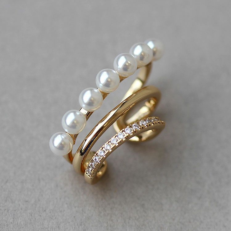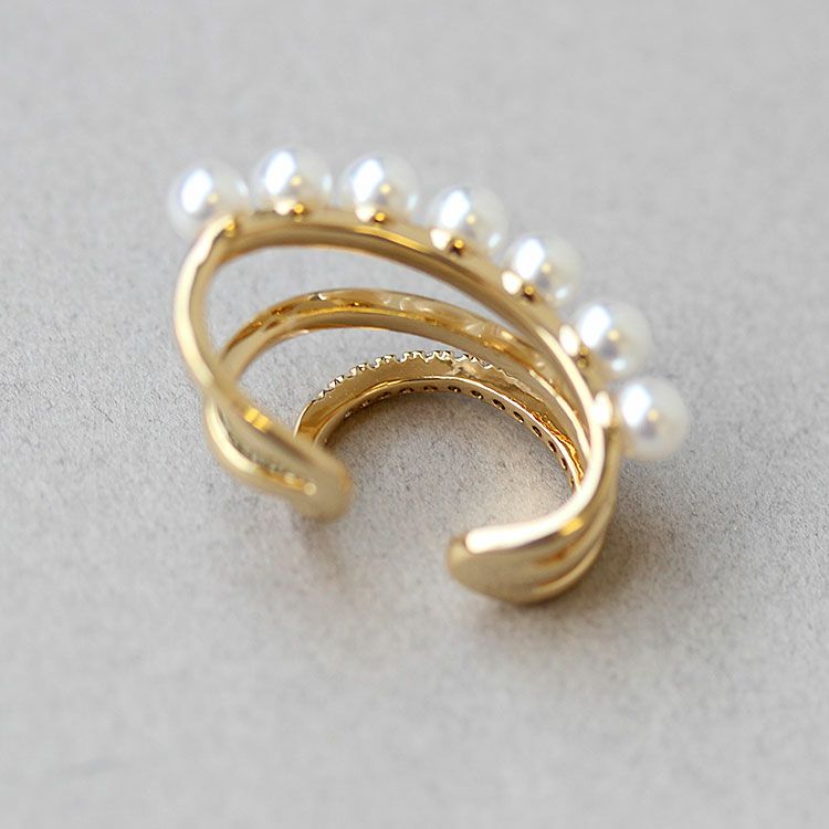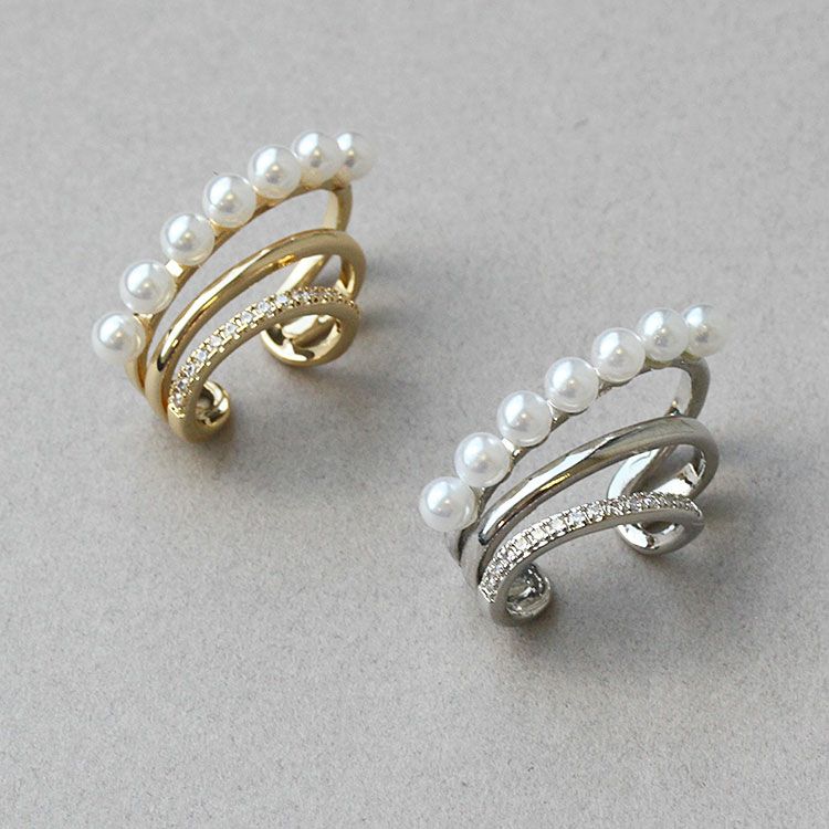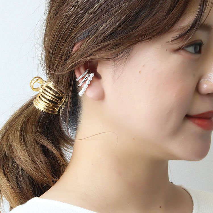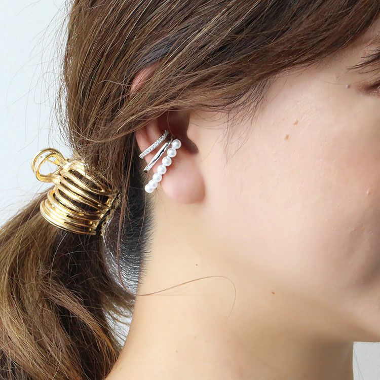 パール、キュービックジルコニアがあしらわれたデザインイヤーカフ。ピアスホールがない方でも、ピアスのように見え、簡単にオシャレ映えします。普段使いからオケージョンシーンまで、幅広くご利用いただけます。