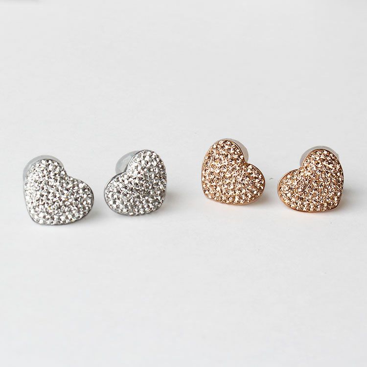 チェコクリスタルがパヴェ状に敷き詰められたハートモチーフのイヤリング。華やかで大人かわいいデザインです。ステンレス素材を使用しているので変色しづらく季節を問わずつけやすいのが特徴。女子会やお買い物はもちろん、オフィス使いやオケージョンシーン、パーティーシーンにもおすすめです。