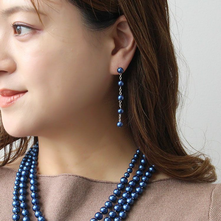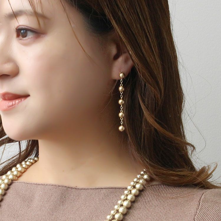 やさしげな肌触りと独特の風合いが魅力の、コットンパールのデザインロングピアス。しなやかに揺れる華やかなデザインは、パーティーからデイリーまで幅広くご使用いただけます。
