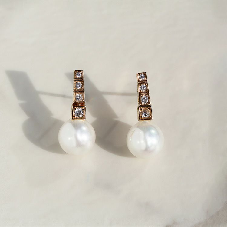 18金メッキのゴールドメタルにクリスタルガラスがきらめき、世界一の人工パールといわれるスペイン、マヨルカ島で生産されるマジョルカパールを合わせた小さめサイズのピアス。さりげなく華やぎと上品さを与えてくれます。デイリーにも使いやすく、フォーマルやセレモニーにもOKな万能デザイン。