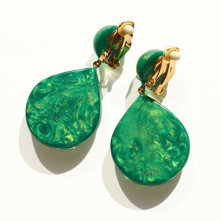 上質な樹脂、ポリエステルレジンの特性を活かし、ガラスのような質感を再現しつつも、軽くてつけやすいことで人気を博しています。肌に触れる部分に金属を使用していないため、アレルギーの方でも安心してお使いいただけます。
