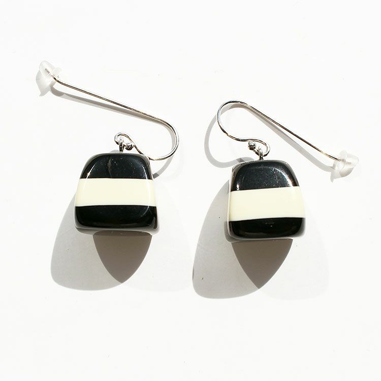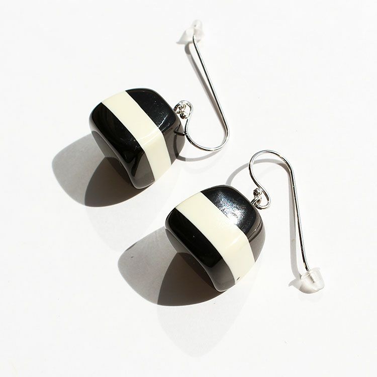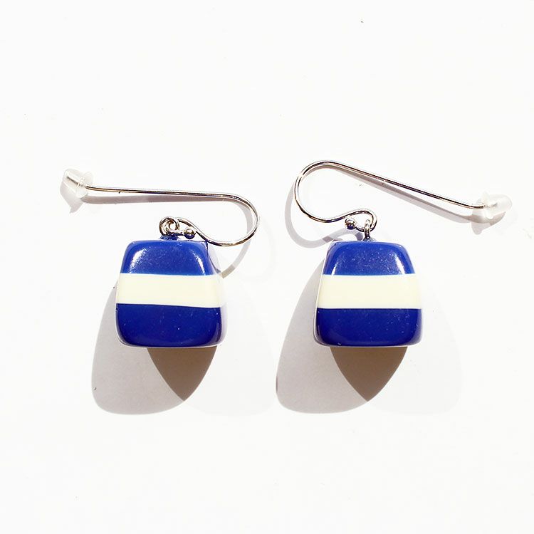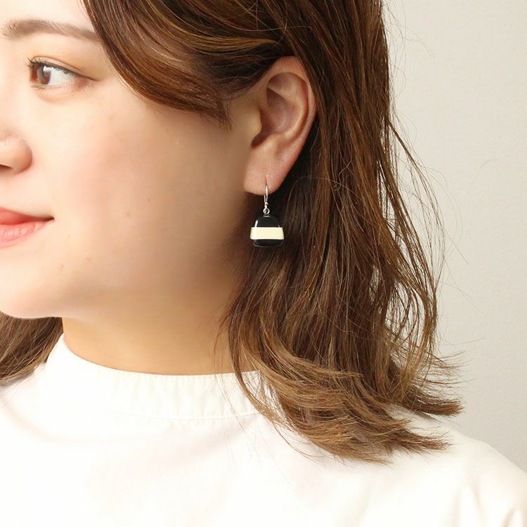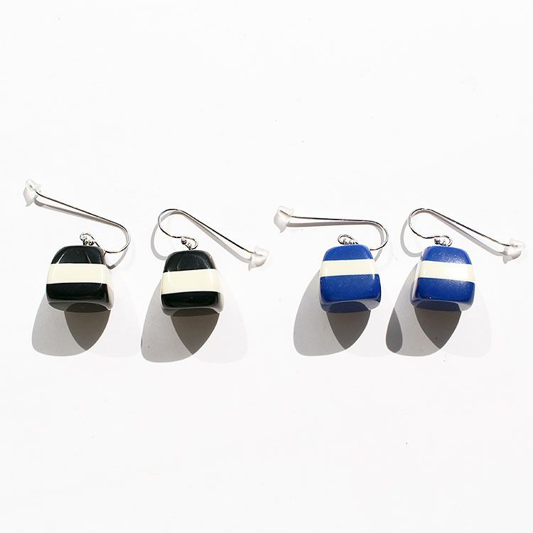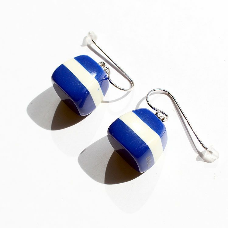英語で『至福』を意味するBLISS。無上の喜びを得た時の感情をイメージし、印象深く、幸せを惹きつけるような魅力に溢れたデザインです。印象的なブルーのストライプデザインが特徴的なハンドメイドの樹脂製フックピアス。