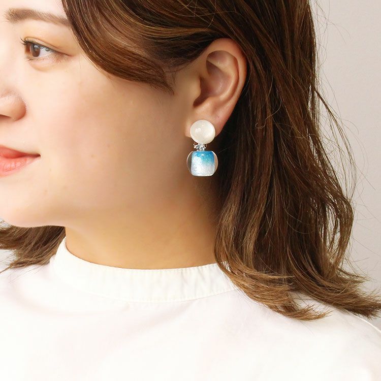 英語で『至福』を意味するBLISS。無上の喜びを得た時の感情をイメージし、印象深く、幸せを惹きつけるような魅力に溢れたデザインです。煌めくグリッターが美しいハンドメイドの樹脂製イヤリング。