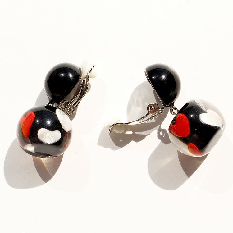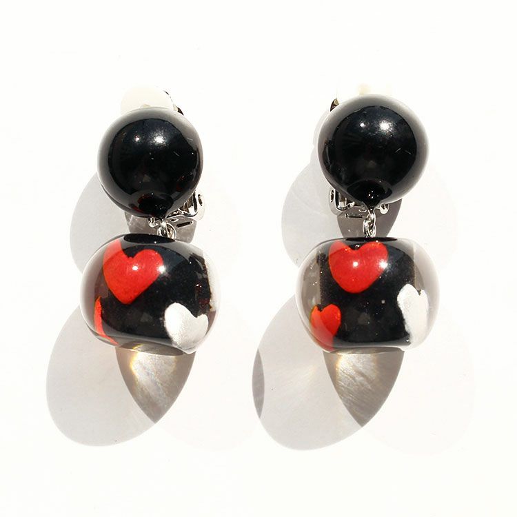 英語で『至福』を意味するBLISS。無上の喜びを得た時の感情をイメージし、印象深く、幸せを惹きつけるような魅力に溢れたデザインです。印象的なブラックハートデザインのハンドメイドの樹脂製イヤリング。