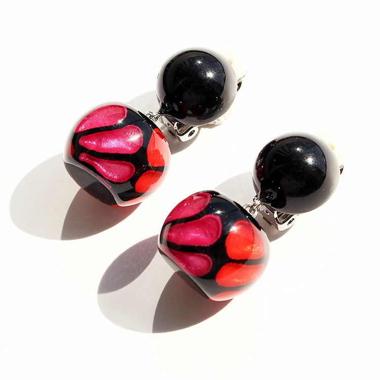 英語で『至福』を意味するBLISS。無上の喜びを得た時の感情をイメージし、印象深く、幸せを惹きつけるような魅力に溢れたデザインです。印象的なブラックの斑点模様が美しい、ハンドメイドの樹脂製イヤリング。