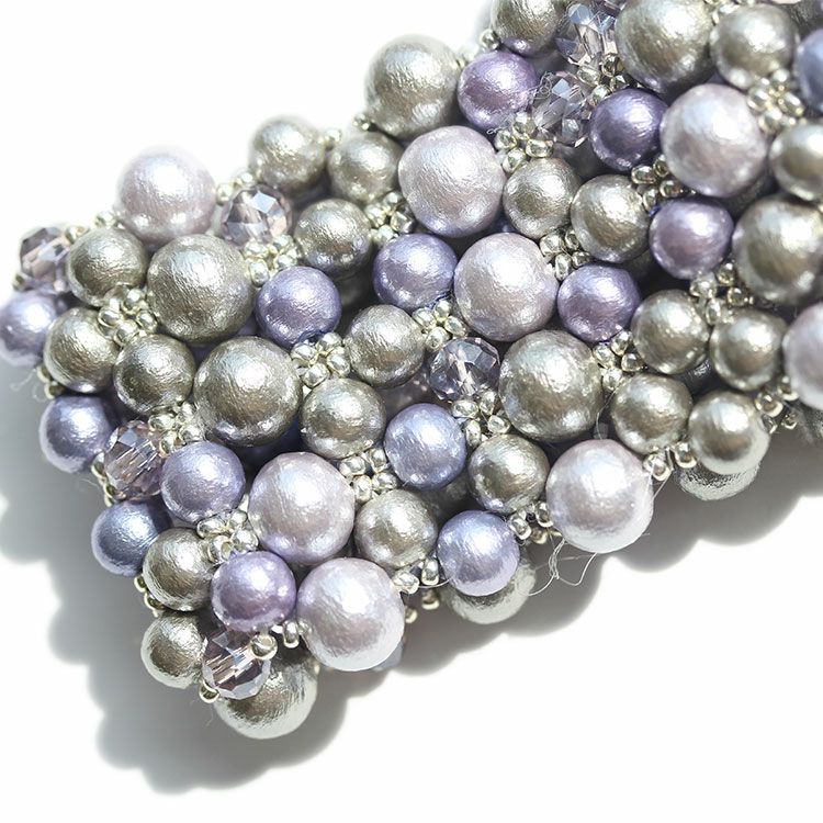 素材:コットン(パールパウダーコーティング)、クリスタルガラス、合金、シルバートーンコート