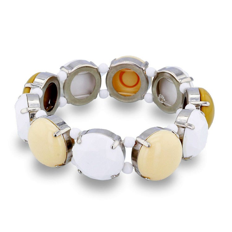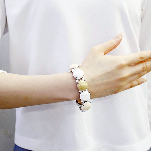 ターコイズブルーが爽やかなデザインブレスレット。ゴムを使用しているので着脱も簡単にでき、アクリルならではのマット感と色の鮮やかさは着けるだけで明るい印象にしてくれます。