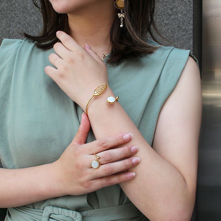 バングル、リングともに柔らかいメタルを使用しており、サイズは調節可能。優しく調節してご使用ください。