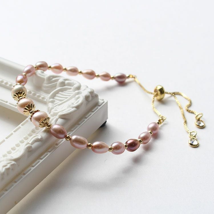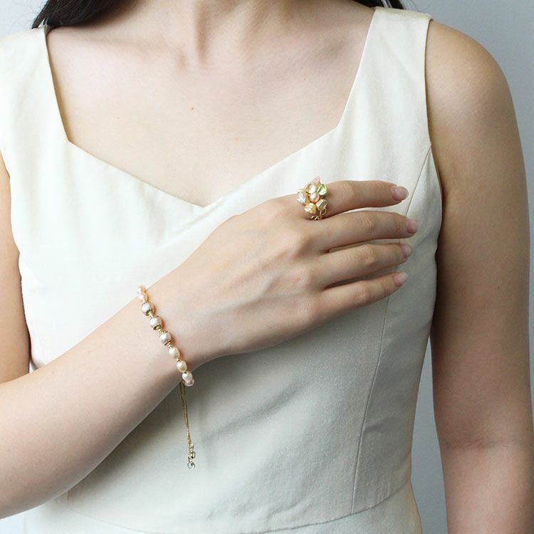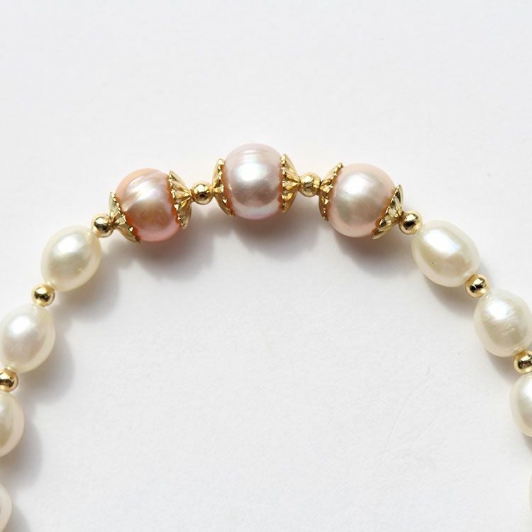 華やかな淡水パールブレスレット。やわらかくなめらかな輝きを放ち、一粒一粒表情の異なる淡水パールは、唯一無二の存在。自然の美しさが凝縮された輝きをお楽しみいただけます。カジュアルからフォーマルまでさまざまなシーンでご利用いただけます。