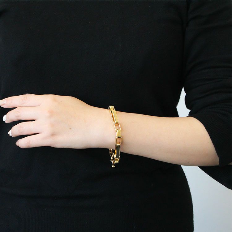シンプルながらも個性のあるチェーンブレスレット。合わせやすくおしゃれ見えするので使い勝手の良いデザインです。