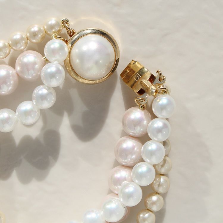 スペイン・マヨルカ島の伝統工芸品です。地中海に含まれる天然成分を素材に、幾重にもパールエッセンスを塗り重ね、人工でありながらも、天然真珠さながらの内側から輝くような光沢・色合い・巻の厚みを再現。天然真珠よりも傷が付きにくく、汗や化粧水による品質変化が少ないため扱いやすく、気軽に装えるのもマジョルカパールの魅力です。